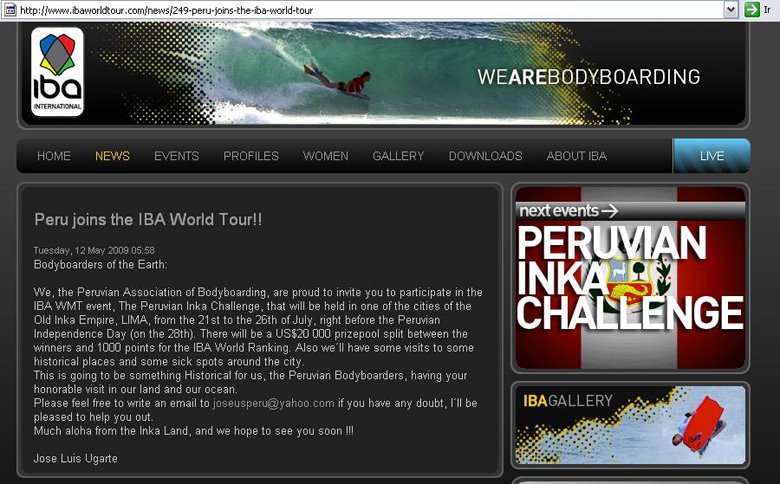 Muchas gracias Jose Luis. Ya saben cibercorcheros, pronto mas imformación al respecto, por lo pronto pueden dirigirce al home y votar por la playa en la cual piensan que deberia ser este PERUVIAN INKA CHALLENGE...